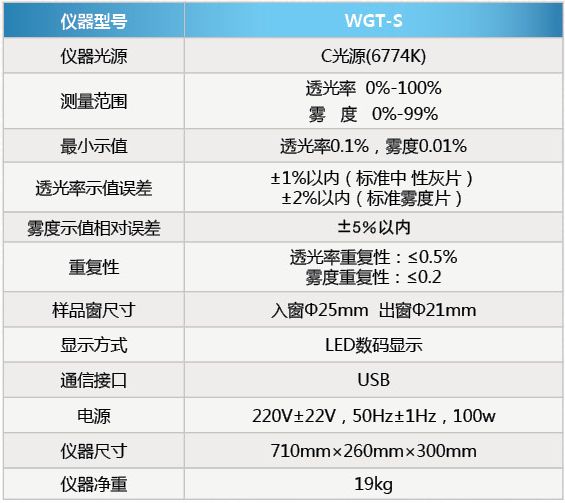 - 商品名稱:上海物光透光率/霧度測定儀WGT-S