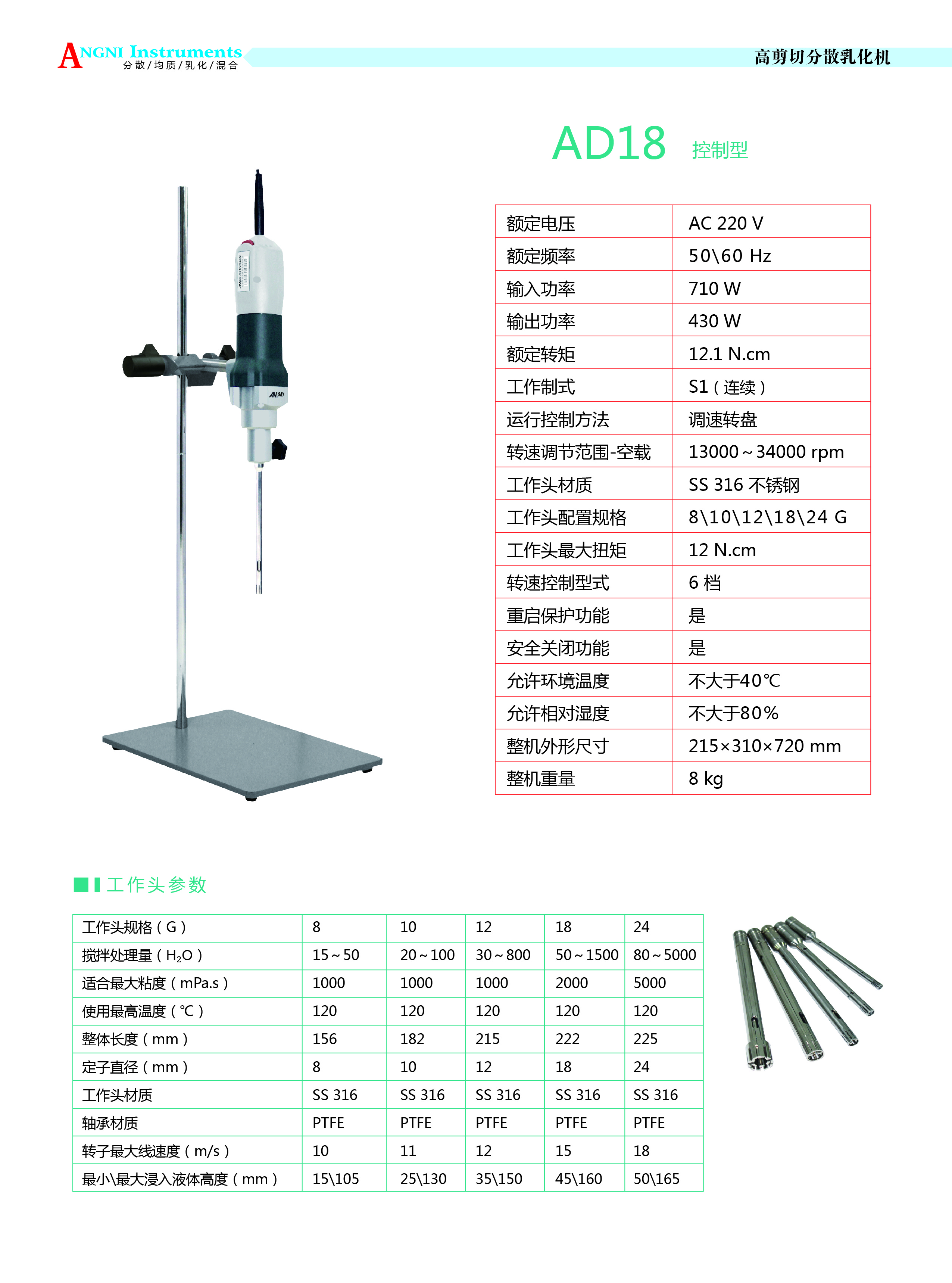 - 商品名稱:上海昂尼高剪切分散乳化機AD18 套裝四