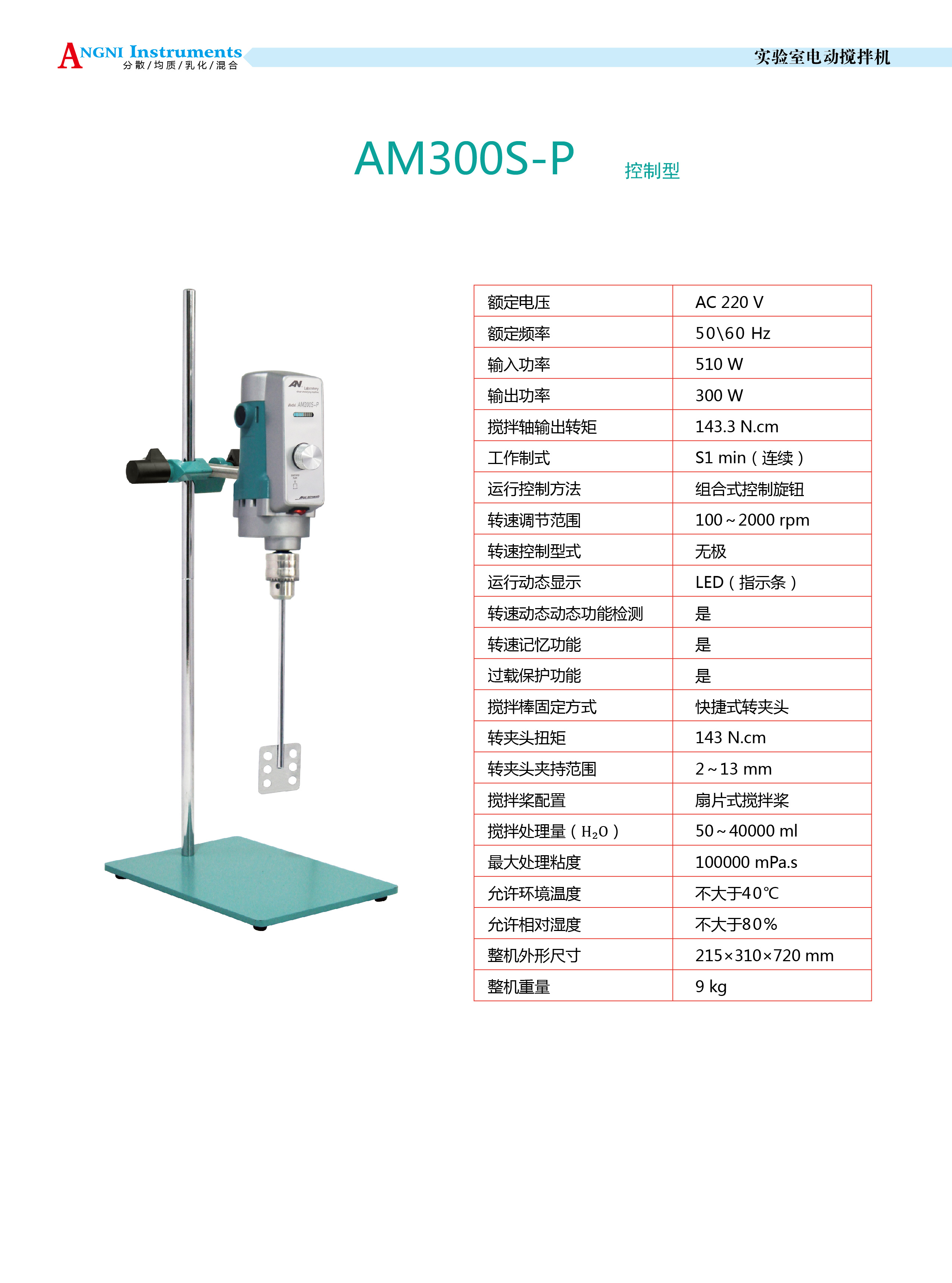 AM300S-P實(shí)驗(yàn)室電動(dòng)攪拌機(jī)采用結(jié)構(gòu)緊湊的串激式微型電機(jī)驅(qū)動(dòng),適用于實(shí)驗(yàn)室低至中、高粘度液體的混合攪拌。