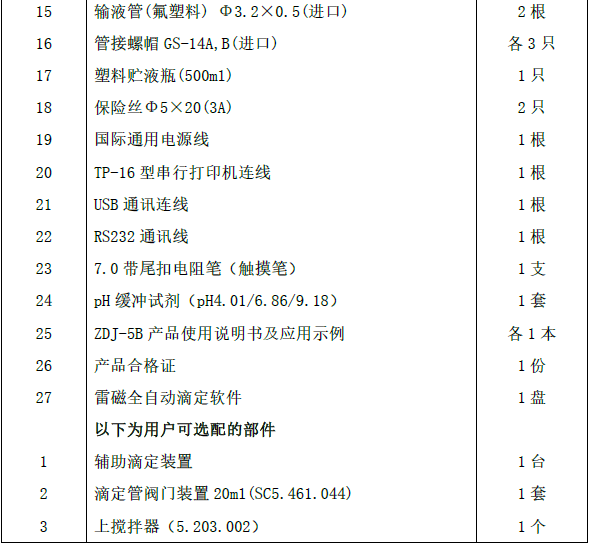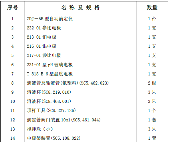 | 關(guān)鍵字 | 【ZDJ-5B型自動(dòng)滴定儀(雙管路)】ZDJ-5B主機(jī)、電極支架、10mL滴定裝置、213-01鉑電極、216-01銀電極、231-01型pH玻璃電極、輔滴定單元 |