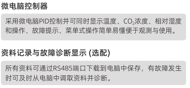 ● 具有溫度偏低、偏高和超溫報(bào)警,CO2濃度過高或過低報(bào)警;