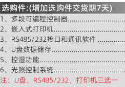 注:帶“C”具有制冷功能的落地振蕩器可選配濕度控制功能,濕度控制范圍為60~85%,不帶制冷的振蕩器不可以加光照控制系統(tǒng)