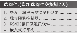 注1:U盤、RS485/232、打印機三選一 注2:DHG-9013A,PH-010(A)不能選配嵌入式打印機、RS485接口及通訊軟件