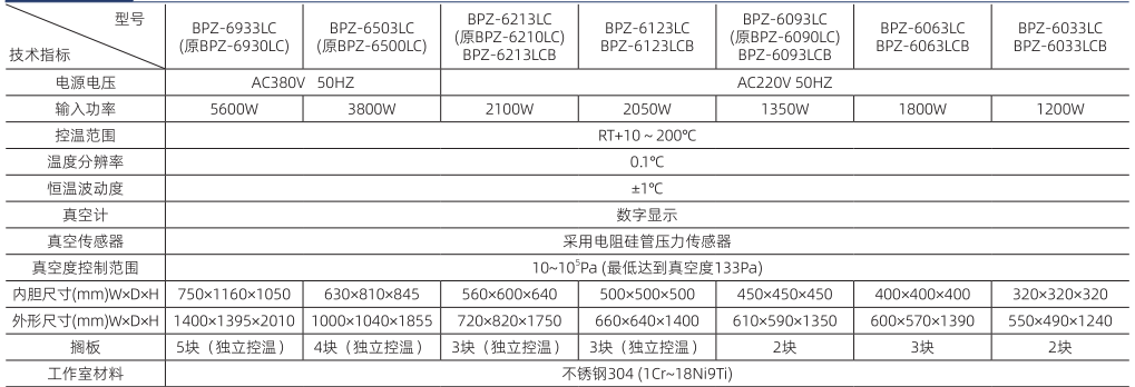 注:1、BPZ-6503LC,接到訂單后,交貨期為25天,BPZ-6933LC接到訂單后,交貨期為30天