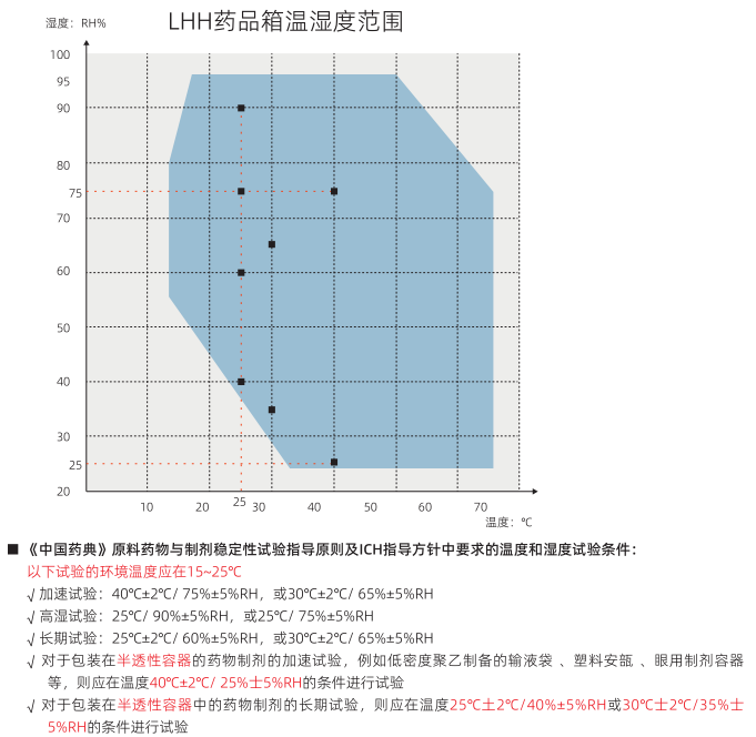 以科學(xué)的方法創(chuàng)造一個對藥品失效評測需長時間穩(wěn)定的溫度、濕度環(huán)境和光照環(huán)境,適用于制藥企業(yè)對藥品及新藥的加速試驗、長期試驗、高濕試驗和強光照射試驗,是制藥企業(yè)進行藥品穩(wěn)定性試驗可靠選擇方案。