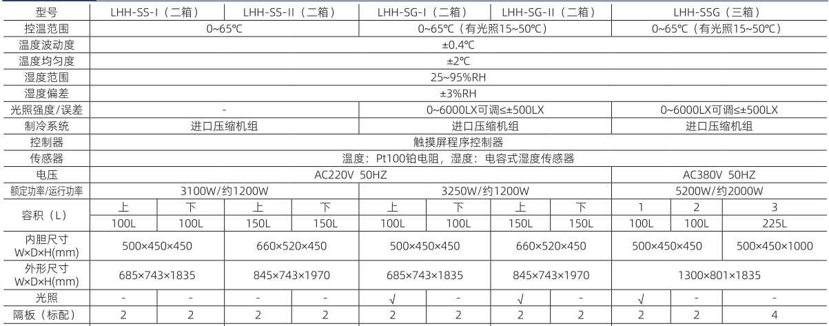3、LHH-SS由1號、2號箱組成,LHH-SG由1號、2號箱組成,LHH-SSG由1號、2號、3號箱組成,其中LHH-SG和LHH-SSG的1號箱帶有光照