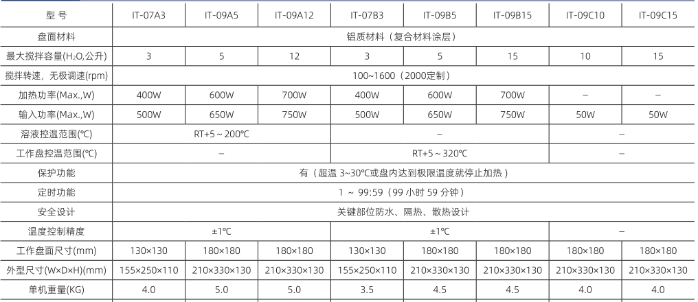 ● 防燙警示燈:A和B系列工作盤溫度超過50℃指示燈閃爍,提醒用戶工作盤及容器、溶液等高于50℃狀態(tài),不能觸碰;