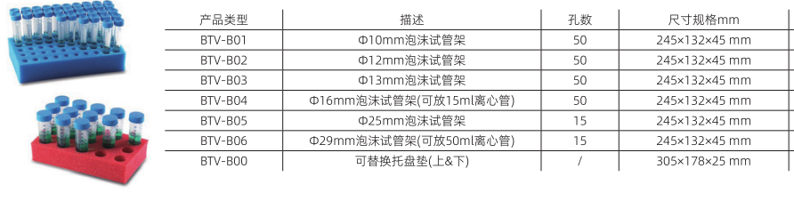 ● 多種泡沫試管支架選配;