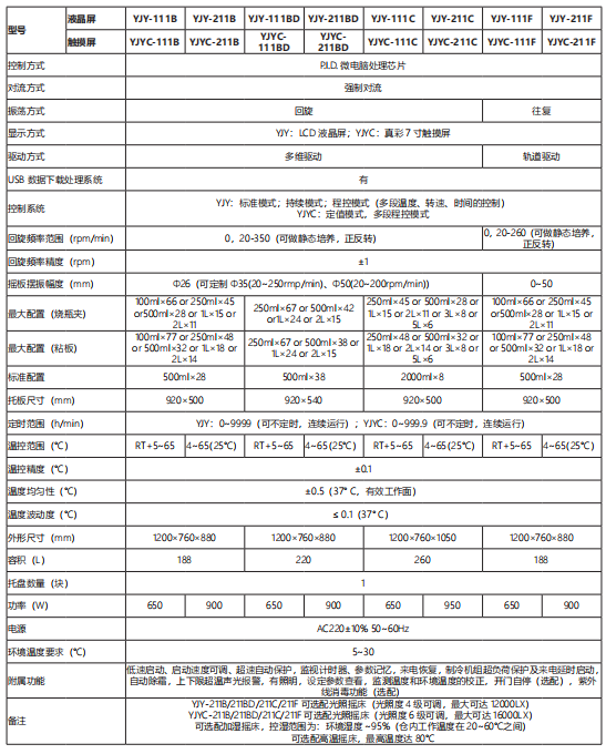 9(YJY 型] LCD 液晶顯示,同界面顯示時(shí)間、溫度、轉(zhuǎn)速。(YYC 型)7寸觸摸屏,同界面顯示設(shè)定及檢測(cè)的時(shí)間、溫度、轉(zhuǎn)速,并顯示當(dāng)前的運(yùn)行模式、日期時(shí)間及報(bào)警故障查看。