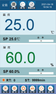 采用超大屏幕彩色液晶觸摸屏溫度控制器,高精度PID控制溫濕度,可設(shè)置定制和程序控制兩種運(yùn)行模式,即時(shí)顯示設(shè)備運(yùn)行狀態(tài),支持?jǐn)?shù)據(jù)和曲線記錄保存。