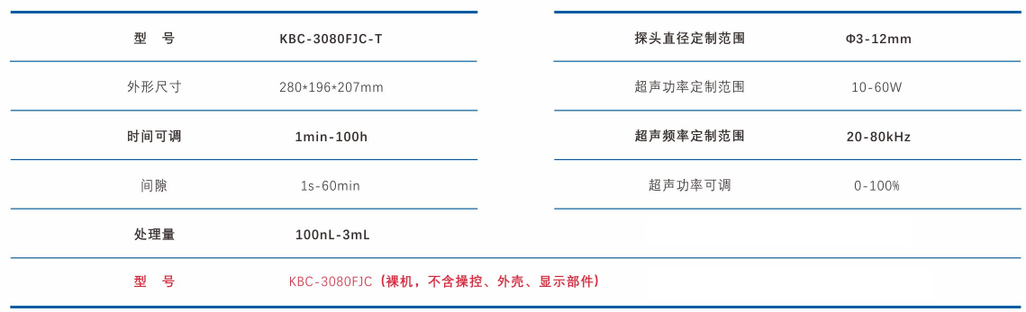 非接觸式超聲波處理器KBC-3080FJC型超聲波樣本處理器主要應用于小劑量樣本處理,如體外診斷領域中對樣本的混勻、破碎、分散oni等該產(chǎn)品為“干法非接觸"式超聲處理器,其可以在不施加任何耦合劑的情況下僅通過接觸樣本容器外壁而將高頻超聲波能量傳入到樣本容器中對樣本進行超聲處理