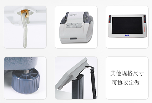 選配功能及配件 選配熱敏打印機、7寸電容式觸摸屏、自動升降裝置、稱重立桿、其他規(guī)格尺寸可協(xié)議定做