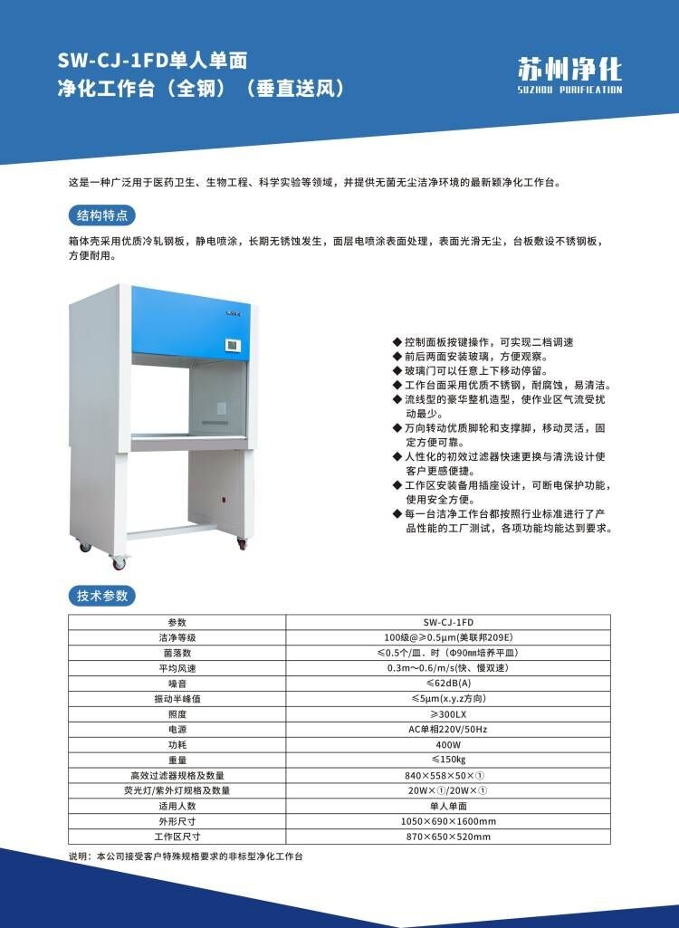 - 商品名稱:蘇州凈化凈化工作臺SW-CJ-1FD(全鋼)