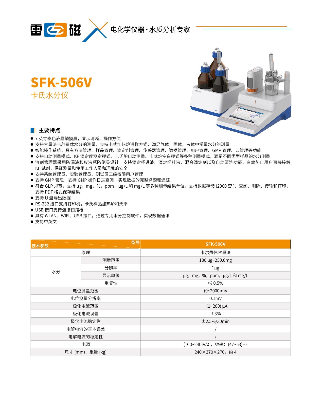 - 商品名稱:上海雷磁卡氏水分儀SFK-506V