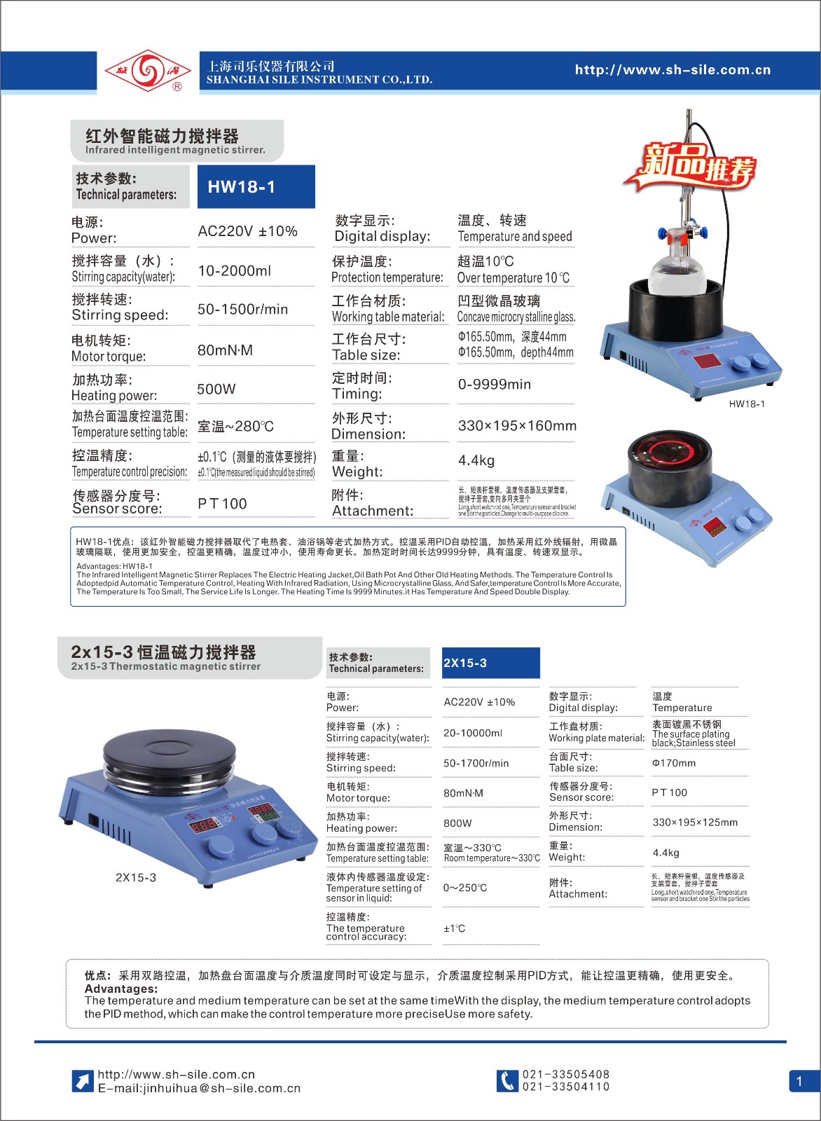 - 標(biāo) 題: 上海司樂紅外智能磁力攪拌器HW18-1
