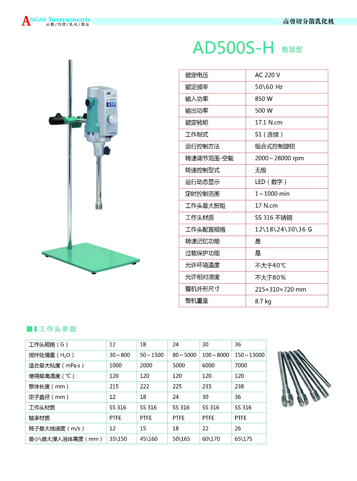 - 關(guān) 鍵 字: 轉(zhuǎn)速調(diào)節(jié)范圍:2000-28000rpm;工作頭適配規(guī)格:12G,處理量:30-800ml,輸出功率:500W,