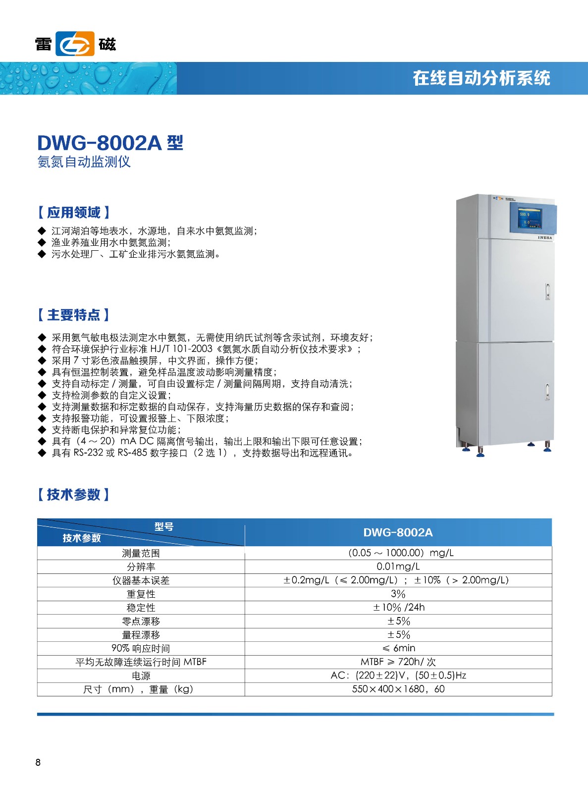 - 關(guān) 鍵 字: 測量范圍:2.0mg/L~2.00 g/L;精度:±10%;(4~20)mA 電流輸出;RS232通訊