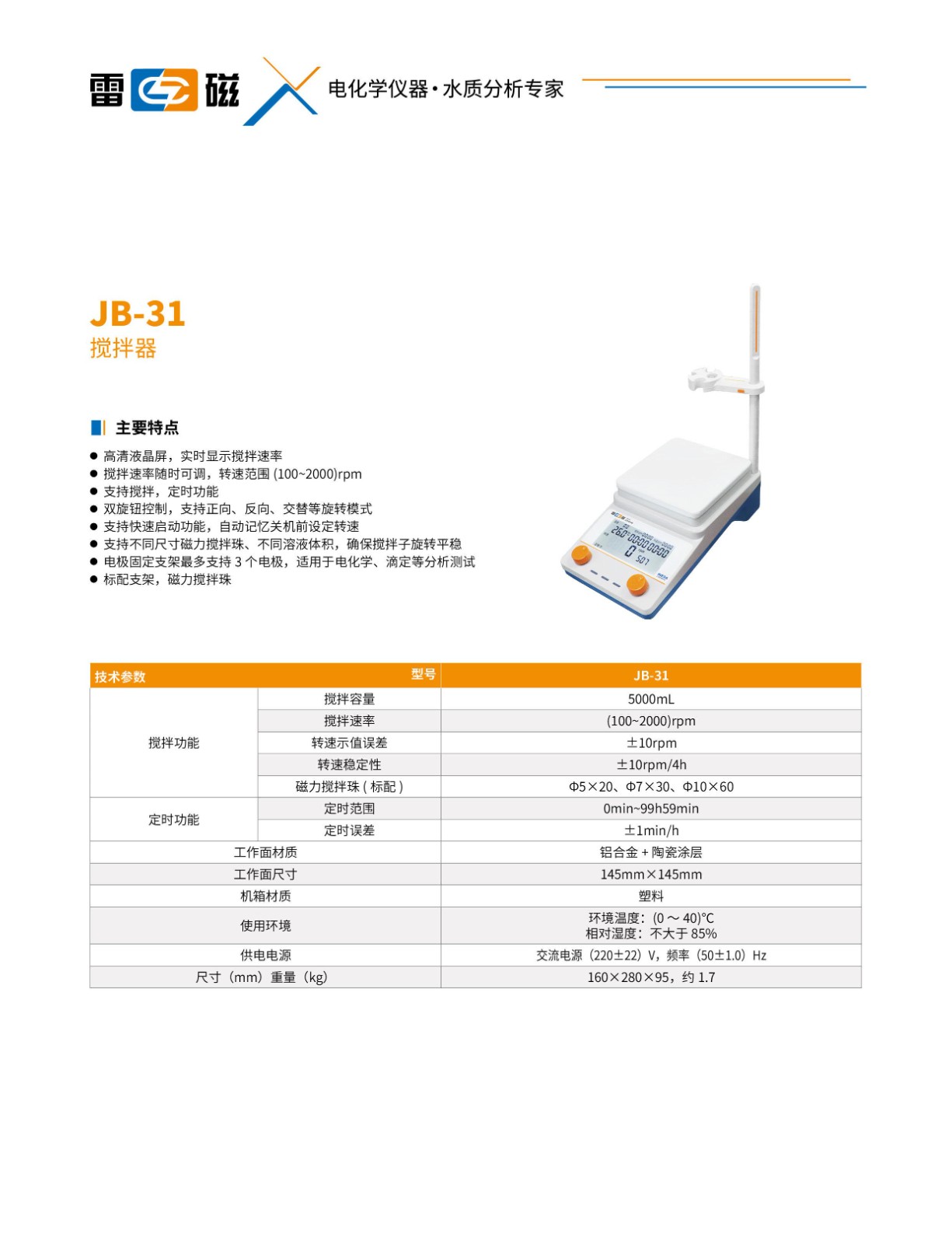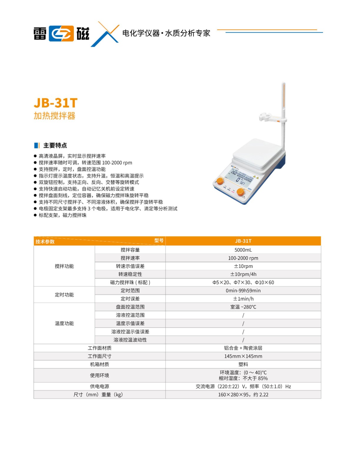 - 標(biāo) 題: 上海雷磁加熱攪拌器JB-31T