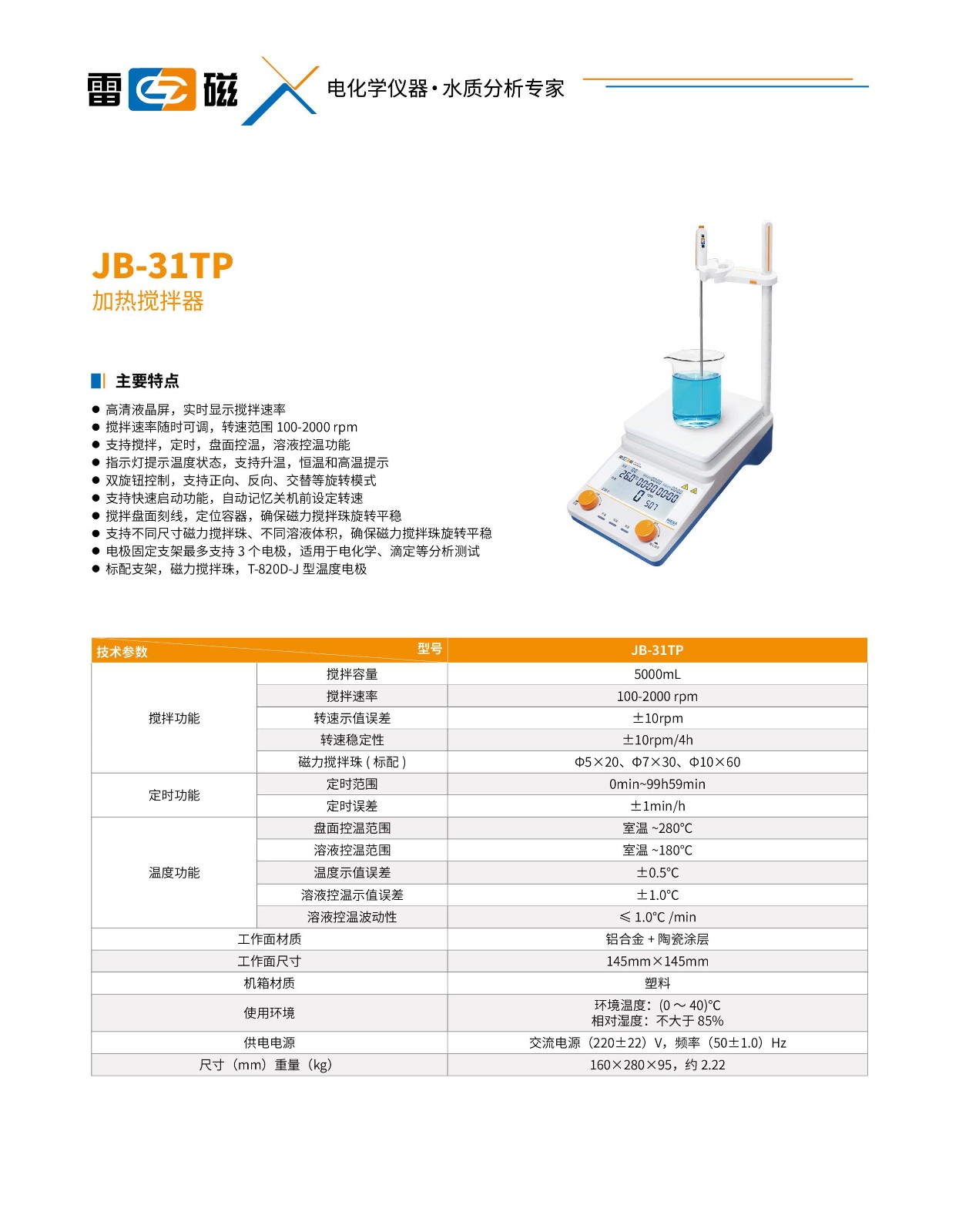 - 標(biāo) 題: 上海雷磁加熱攪拌器JB-31TP