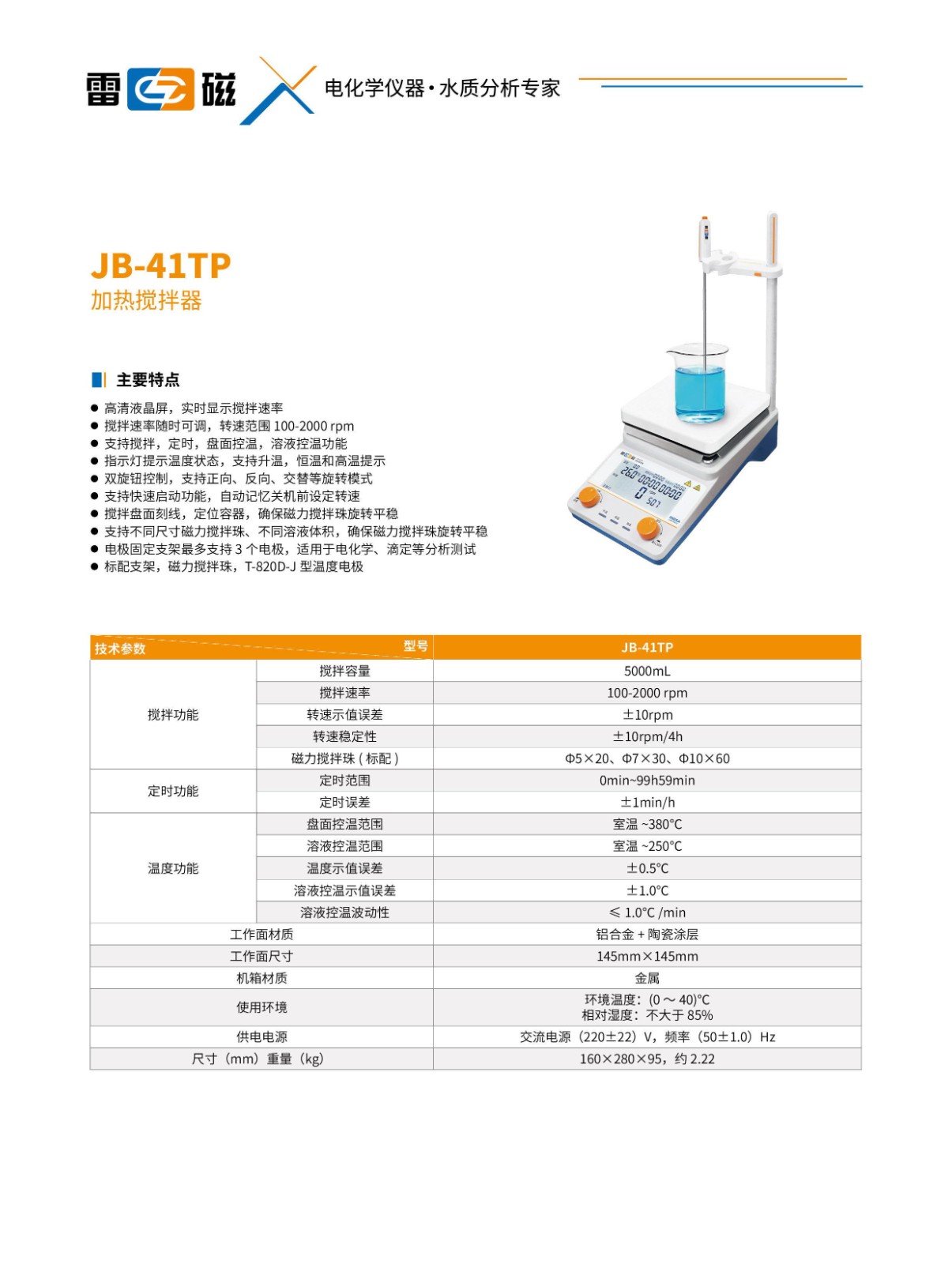 - 標(biāo) 題: 上海雷磁加熱攪拌器JB-41TP
