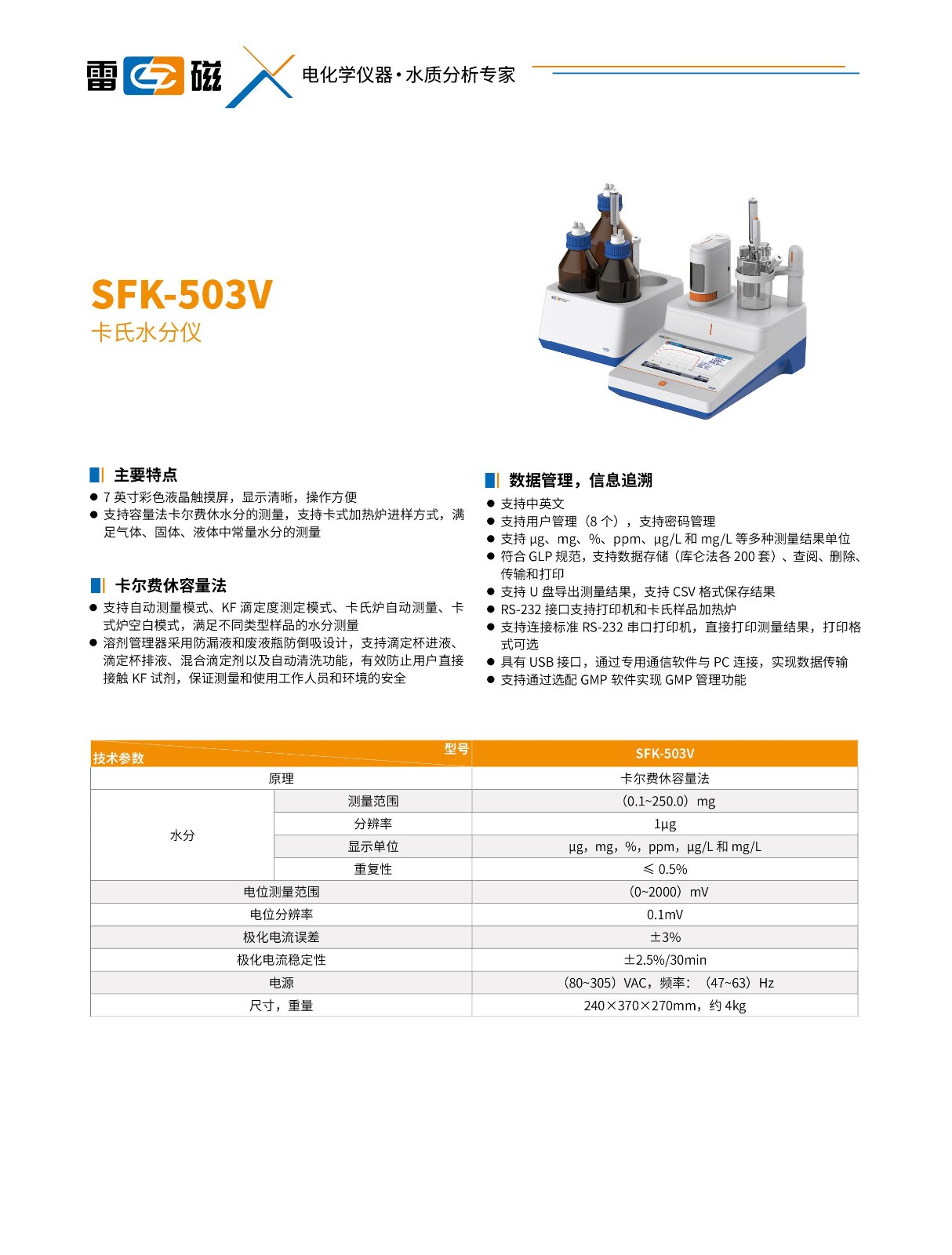 - 標(biāo) 題: 上海雷磁卡氏水分儀SFK-503V(容量法)