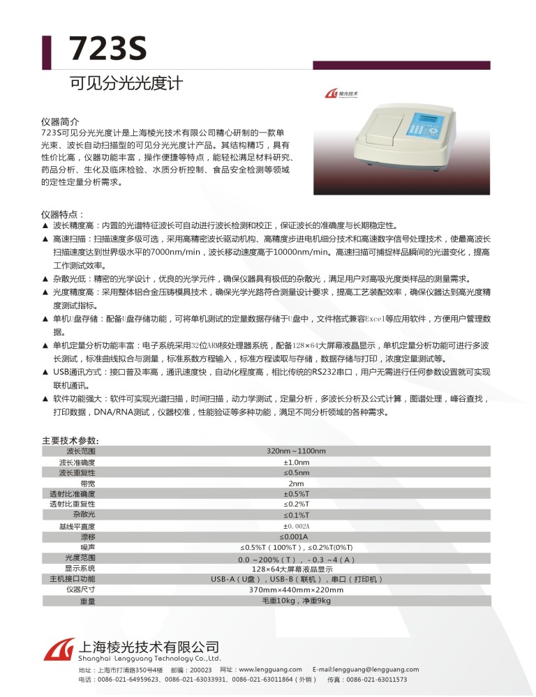 - 標(biāo) 題: 上海棱光可見分光光度計723S