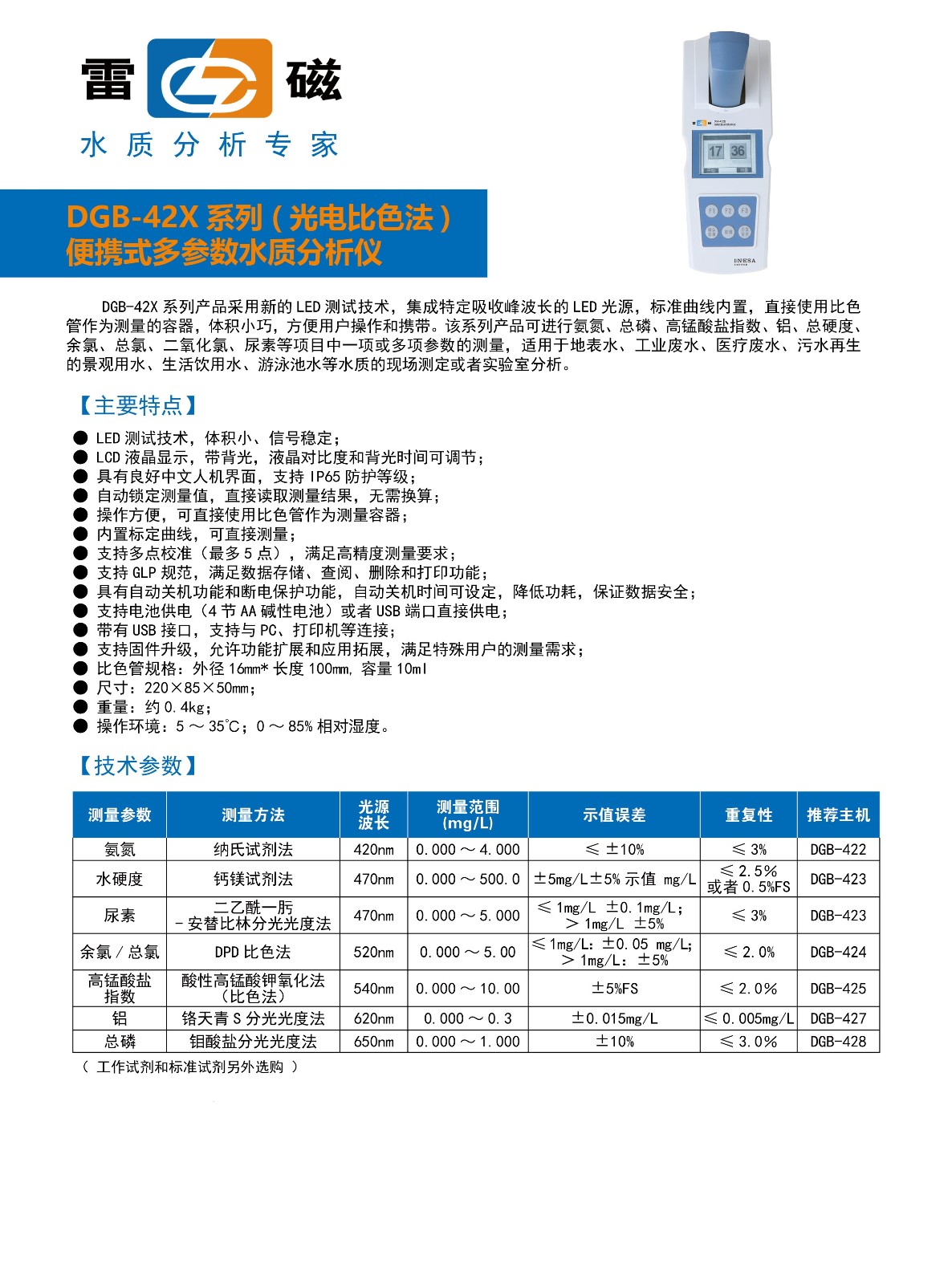 高濃度: COD(150-1500)mg/L, 精度:±8%;
