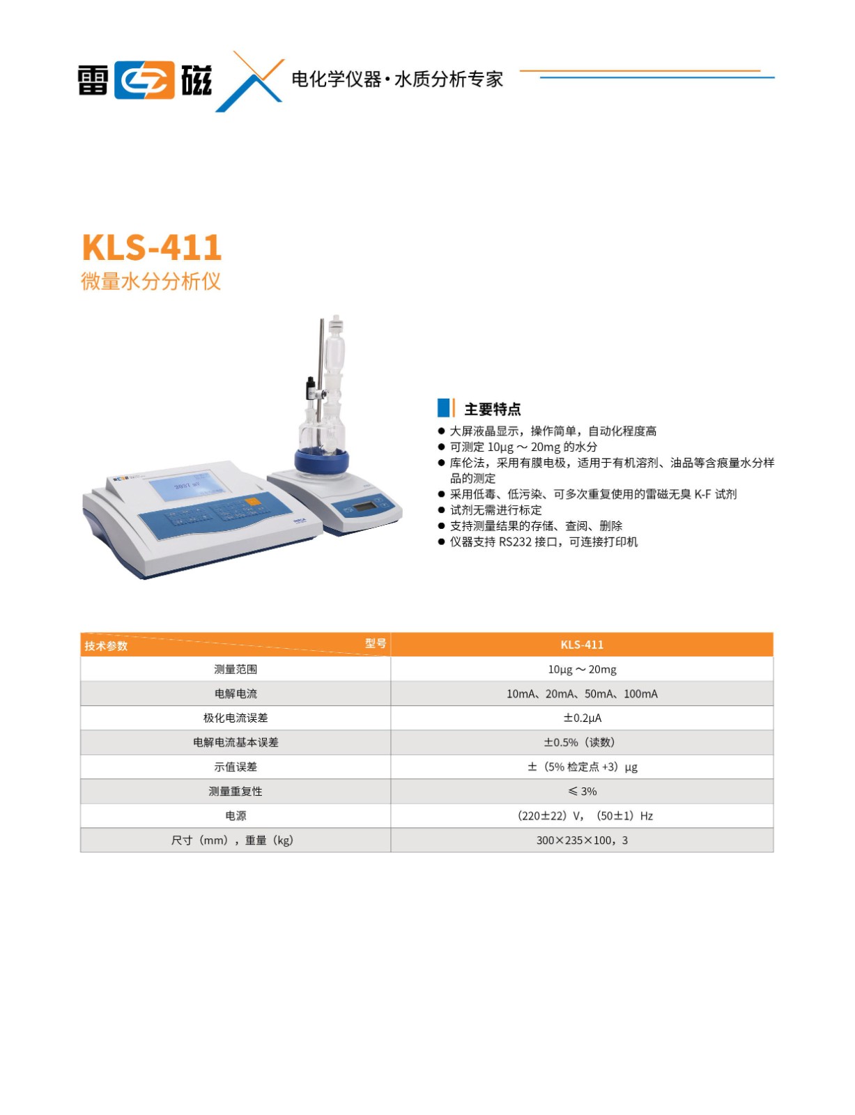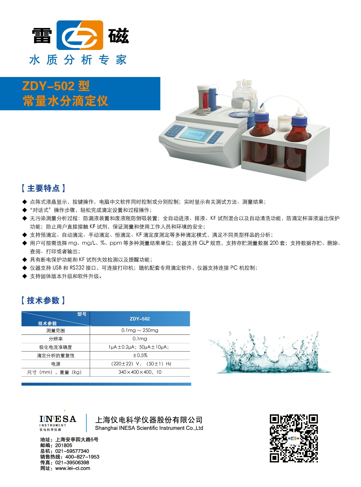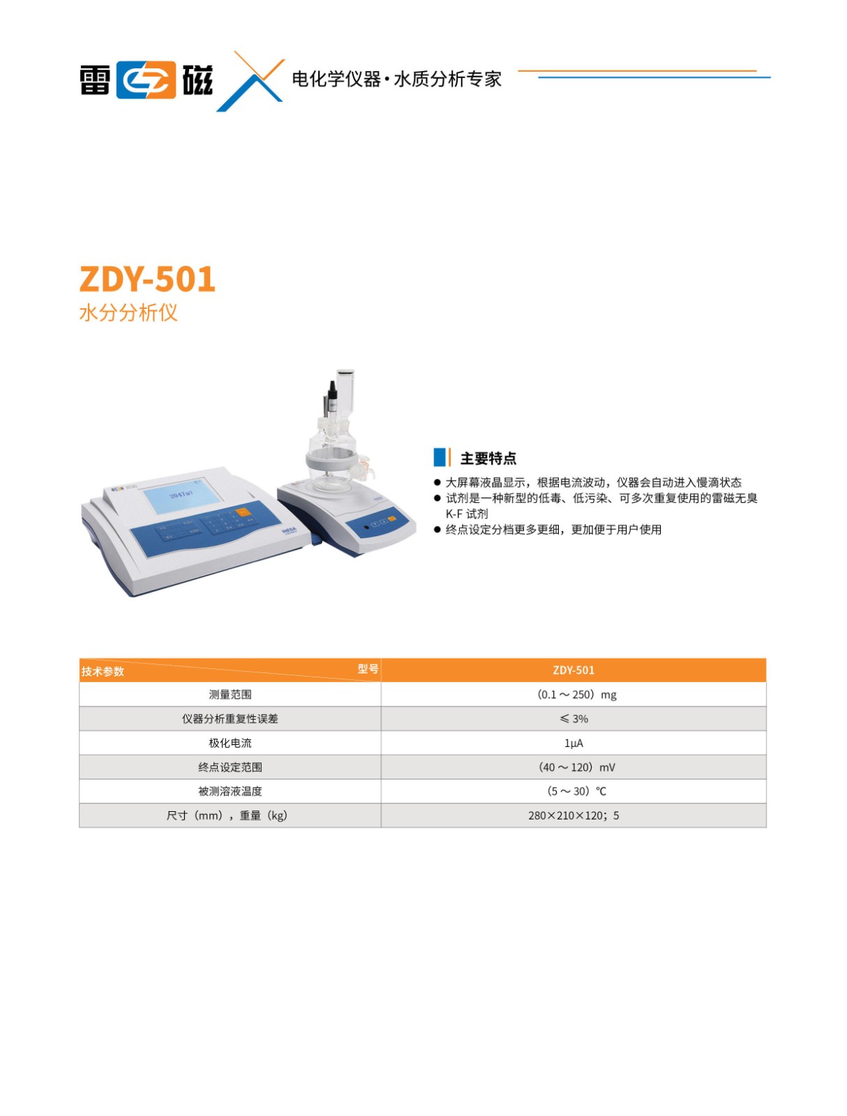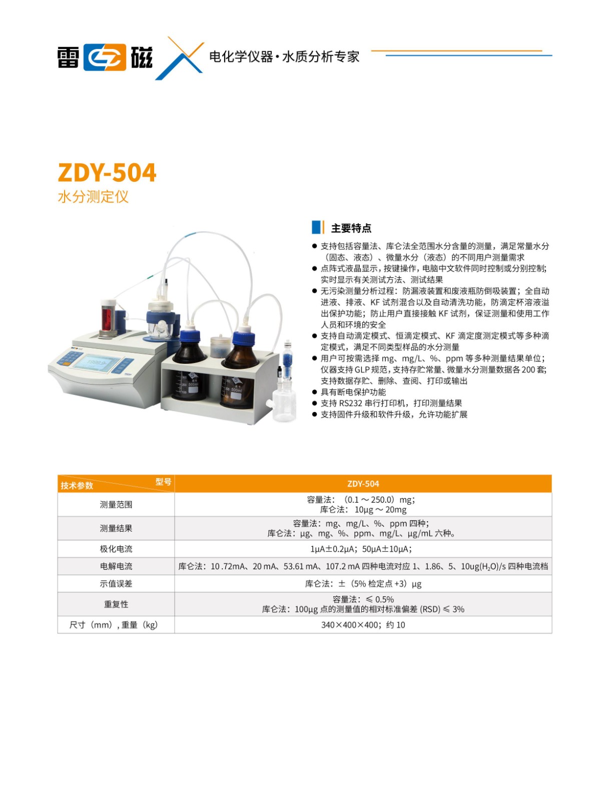 - 副 標 題: 上海雷磁水份測定儀ZDY-504 容量法 庫侖法
