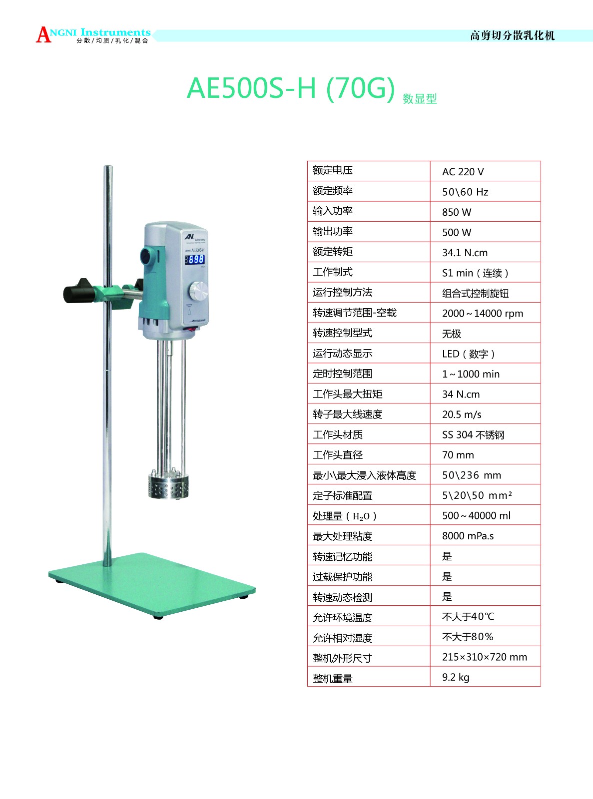 - 標(biāo) 題: 上海昂尼高剪切分散乳化機(jī)AE500S-H 70G